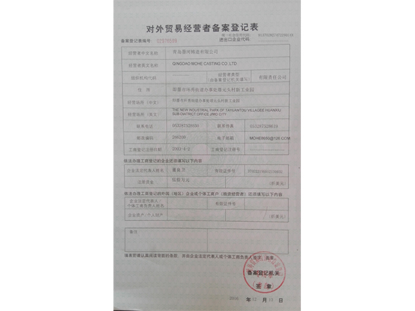 青島墨河鑄造有限公司 聯(lián)系人:董照 電話:13953213469(微信同號) 座機:0532-87566543 郵箱:[email protected] QQ:1678294021 地址:青島即墨市泰山一路南端186號